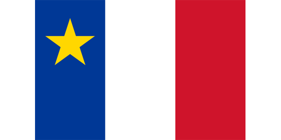 The flag of Acadia is tricolour representing the Motherland of the Acadians. It displays the yellow star, the Stella Maris, which is the symbol of Mary, Acadian national symbol and patron of the mariners.